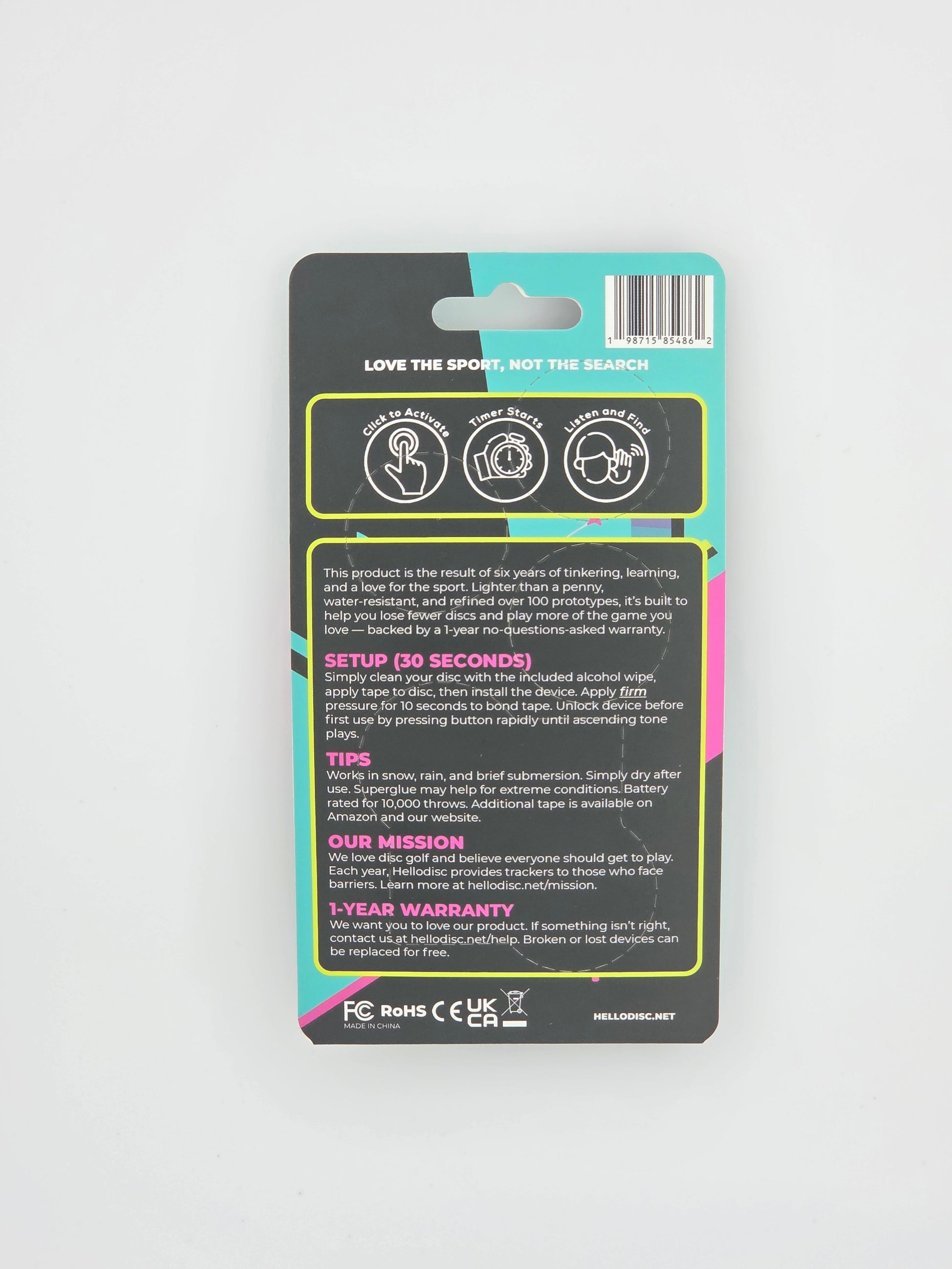 Hellodisc Ultralight is a new disc golf tracker, featuring a sleek design, improved volume, rock-solid durability, custom-fit tape, and incredible battery life.